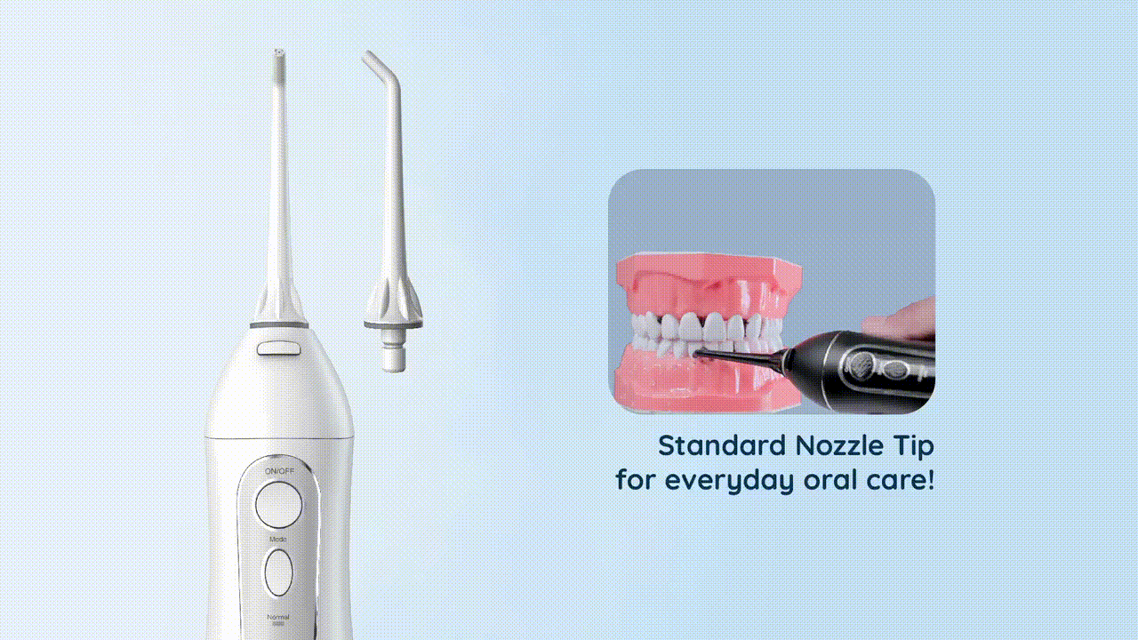 The OC150 Smart Water Flosser® LITE is your essential companion for maintaining top-notch dental hygiene. This dental flosser is travel-friendly, portable, and rechargeable. Comes with 2 customizable nozzle tips variant to choose from “LITE”, it caters to all your dental needs. Experience effortless flossing with its 3 varied modes of flossing.
