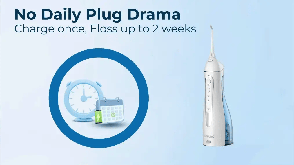 ★★★★★ It is very easy to use and portable. Keeps teeth and gums clean. Easy to charge, takes around 4 hours for full charge. Been using it for 15 days without recharging it. This is 3rd Oracura purchase. Absolutely love the products. Anagha