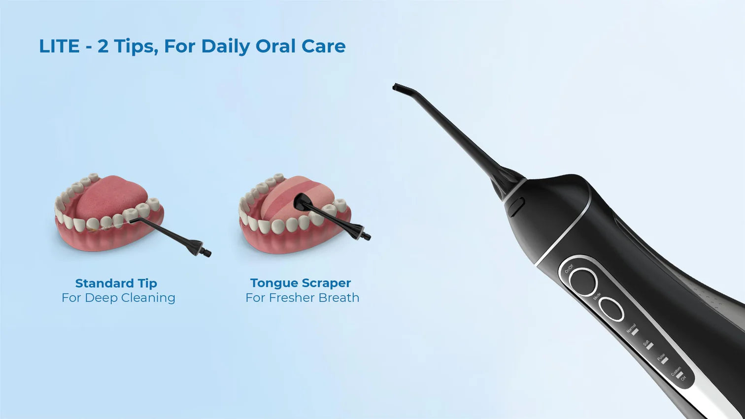 •2 Nozzle Tips ( 1 Standard Tip, & 1 Tongue Scraper)